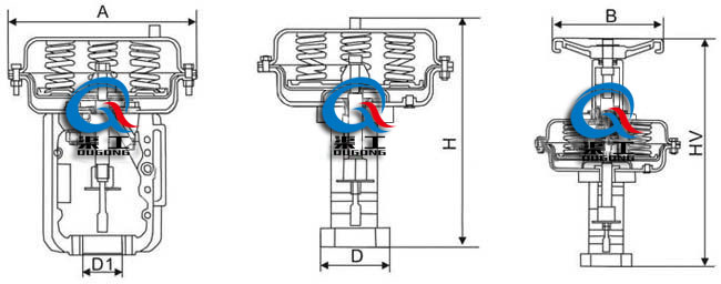 ZHA型:正作用,當信號壓力增加時,閥桿部件向下移;